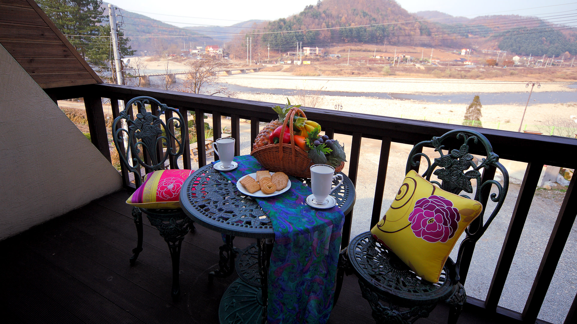 홍천강 맑은 물을 바탕으로 강줄기 옆에 지어진 펜션입니다.
